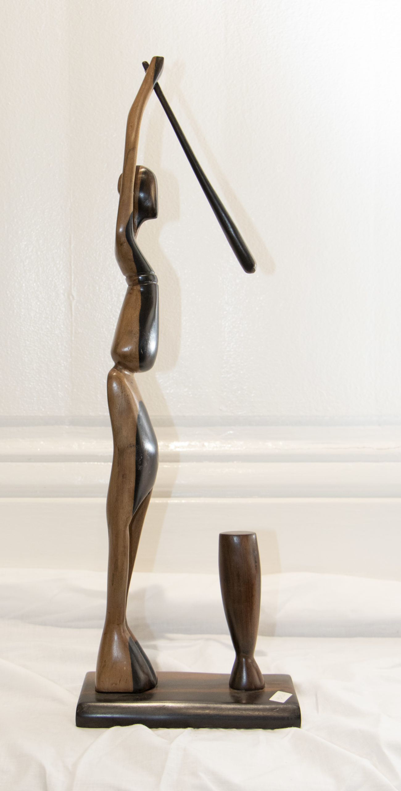 La Sculpture vous propose de contempler la grâce et la puissance de cette pilonneuse de foufou. Elle offre ainsi une connexion avec la vie et la culture africaine. Le choix du bois d’Ebène, par sa dualité de teintes, apporte une profondeur et une richesse visuelle à l’œuvre. Cela permet de mettre en valeur chaque courbe et chaque détail.