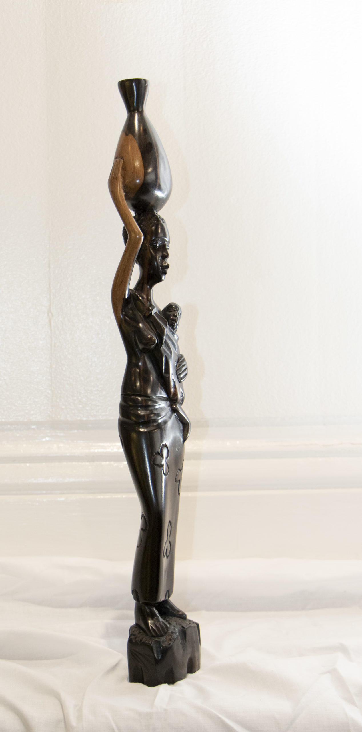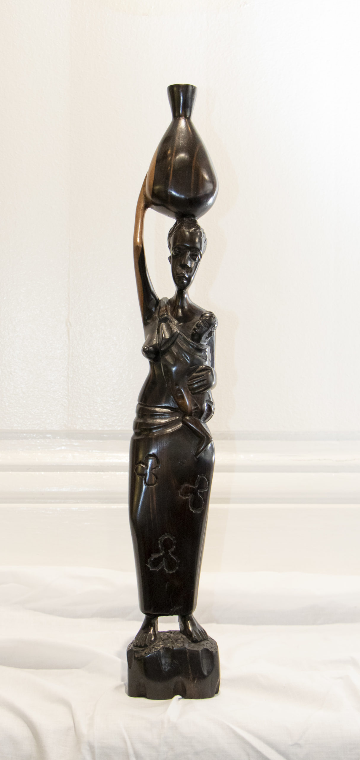 Chaque détail confère à cette pièce une authenticité et une émotion palpable. L’ébène, manié avec respect et expertise, confère à la sculpture une aura de grâce et de tradition. Chaque courbe, chaque expression, révèle l’essence même de la vie de cette « Splendeur Maternelle ».